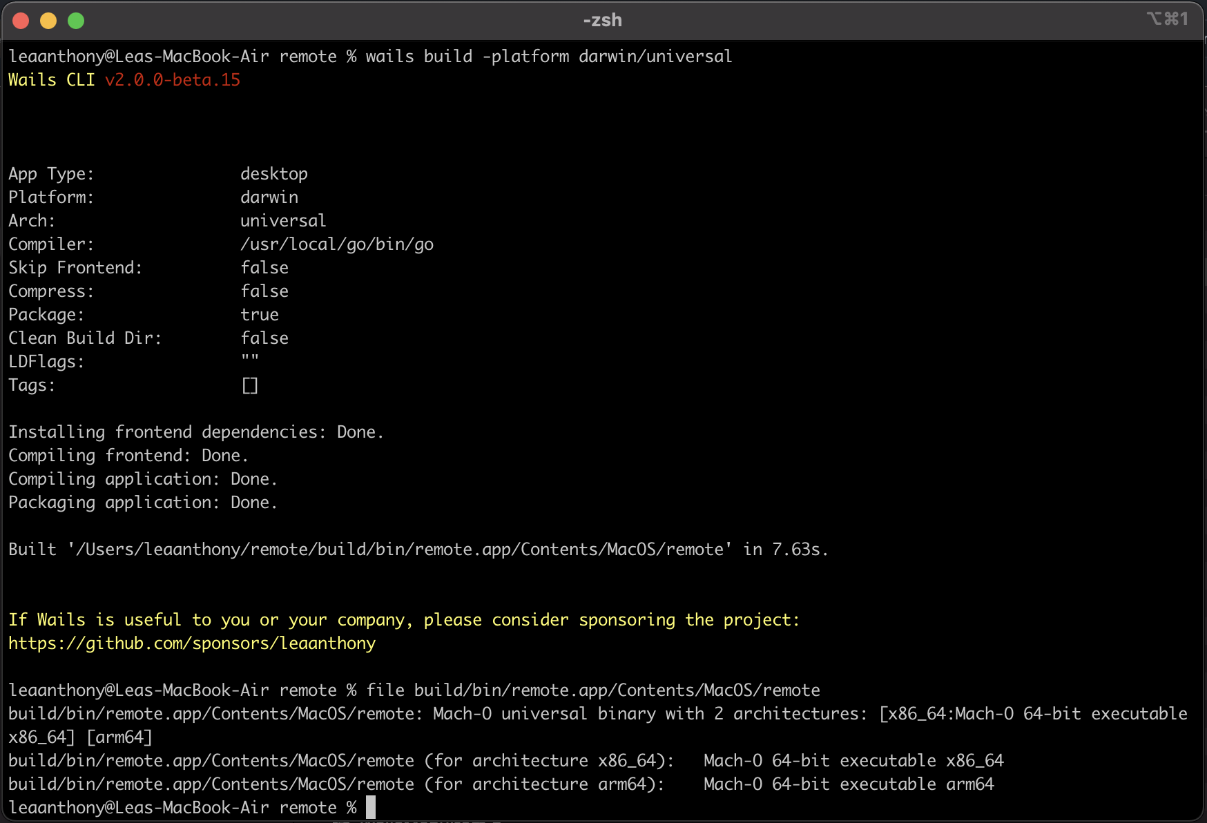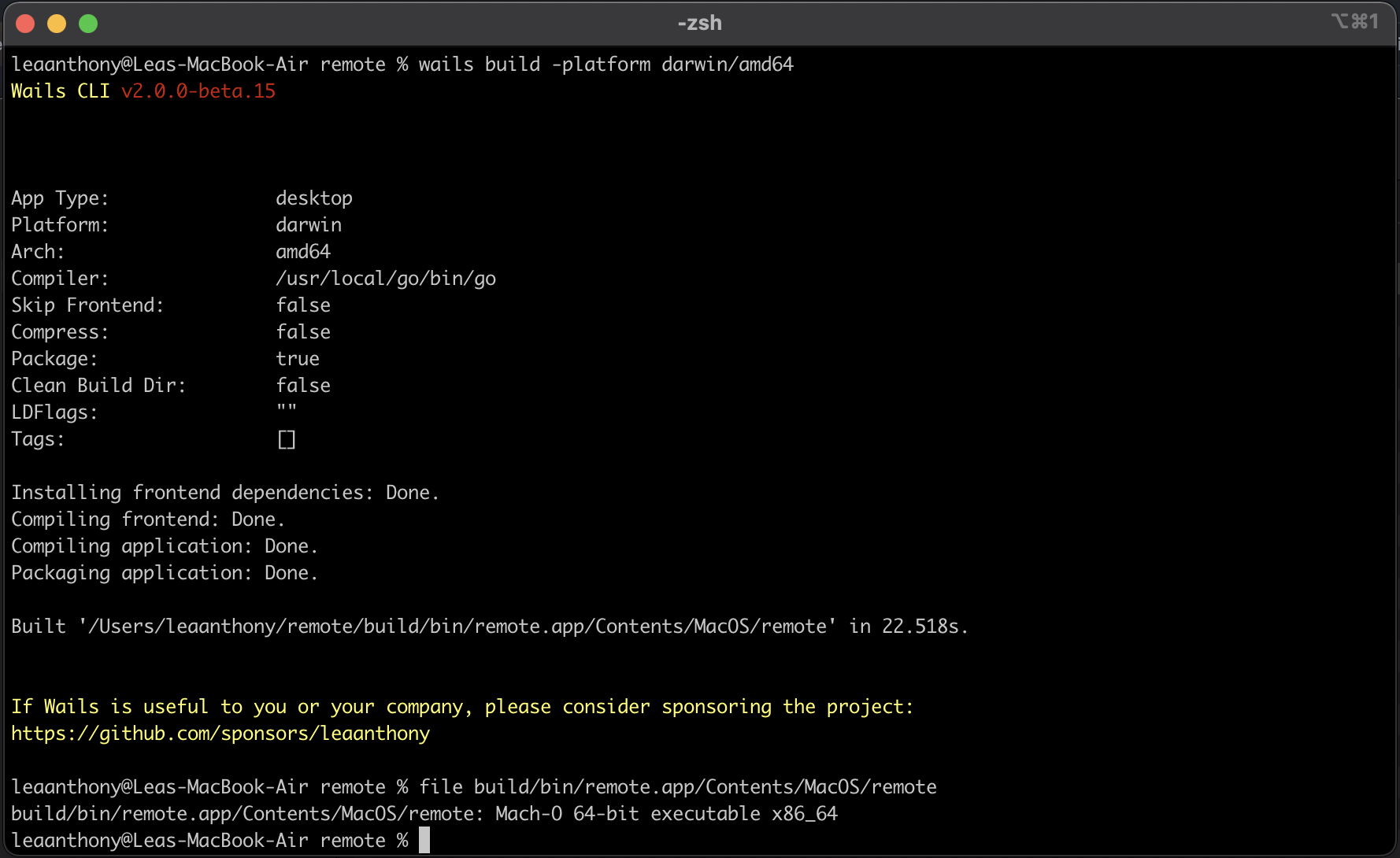 Para abordar esta questão na v3, gostaria de passar para um sistema de construção que existe fora das Wails. Depois de usar Tarefa por um tempo, eu sou um grande fã dela. É uma ótima ferramenta para configurar sistemas de construção e deve ser razoavelmente familiar para qualquer um que tenha usado Makefiles.