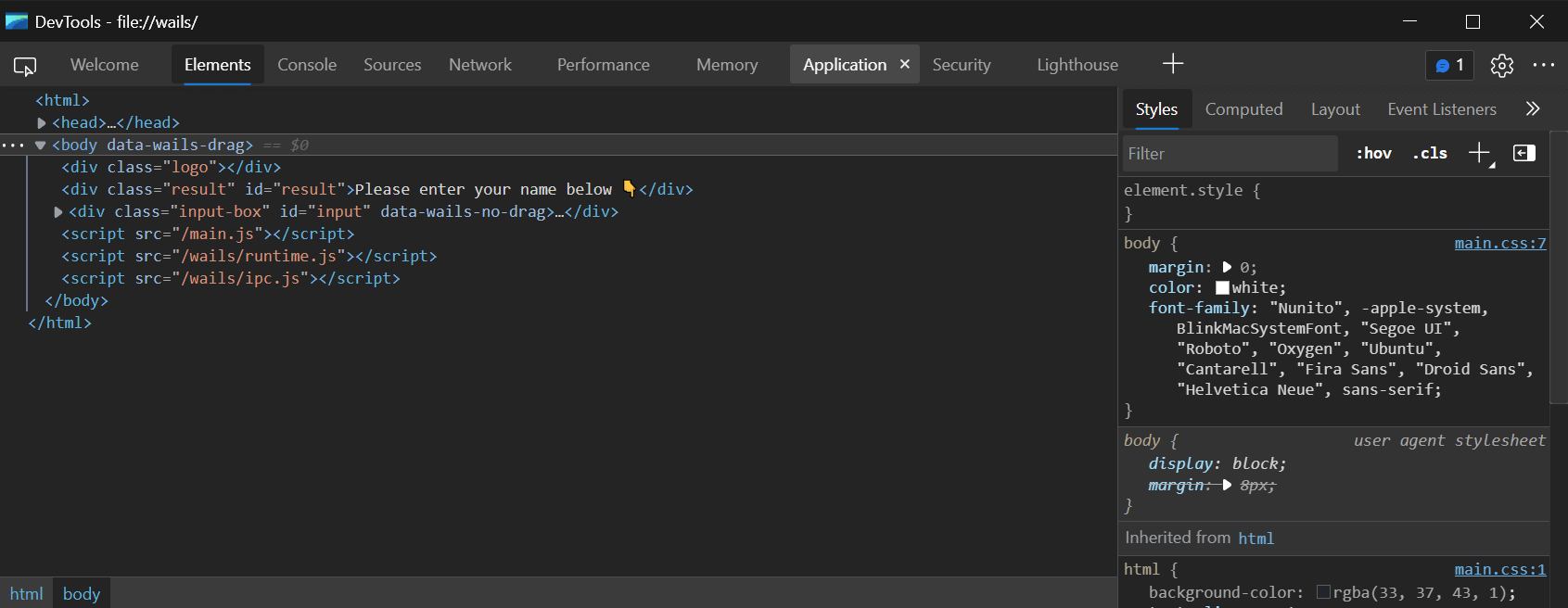Uma das principais características das Wails é gerar ligações para seus métodos Go para que possam ser chamadas a partir de Javascript. O método atual para fazer isso é um pouco hackeado. Ele envolve construir o aplicativo com uma bandeira especial e, em seguida, executar o binário resultante que usa reflexão para determinar o que foi vinculado. Isso leva a um pouco de galinha e ovo situação: você não pode construir o aplicativo sem as ligações e não pode gerar o vinculações sem compilar o aplicativo. Há muitas maneiras em torno disso, mas a melhor seria não usar essa abordagem de todo.